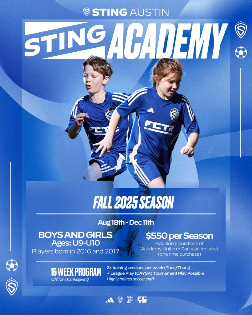 Sting Austin Academy offers a dynamic alternative to traditional recreational soccer programs. Designed for players seeking advanced development, the Academy provides a progressive and sophisticated training curriculum within a unique structural framework that sets the foundation for long-term success in the sport.